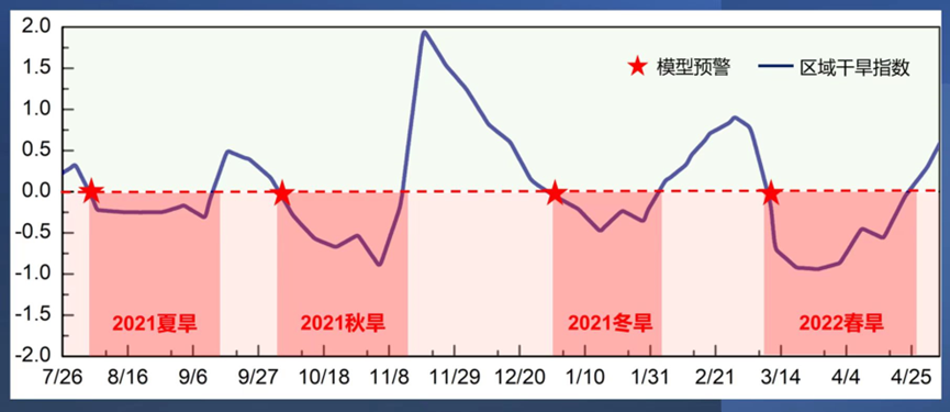图3,贵州地区基于风云遥感观测的地表平均干旱指数(2021年7月至2022年4月),遥感干旱产品准确地监测2021-2022贵州“连旱”情况(2021夏旱,2021秋旱,2021冬旱和2022春旱)